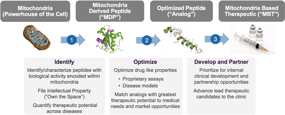 In the pipeline are newly discovered mitochondrial-derived peptides (MDPs) and their analogs which are undergoing pre clinical testing to identify those with the most therapeutic and commercial potential in areas such as NASH, obesity, T2D, cancer, cardiovascular disease and Alzheimer’s disease.