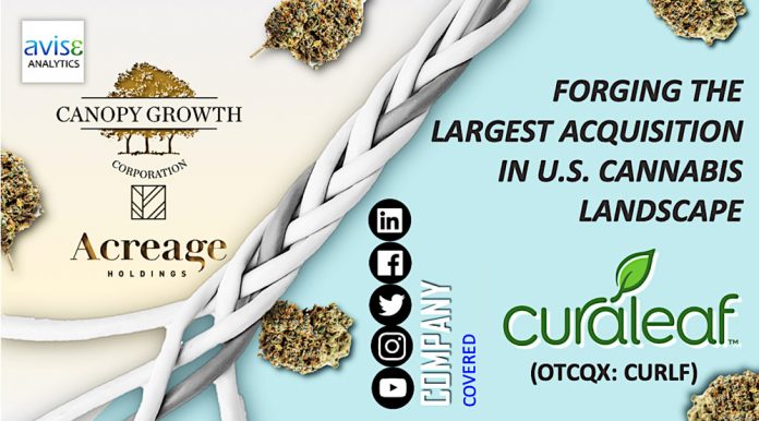 The shares of Curaleaf (OTCQX: CURLF) surged by almost 15% since the news of its acquisition of Cura Partners, the owner of Select brand, in an all-stock deal valued at C$1.27 billion or US$948.8 million became public. The deal will offer both the companies the ability to diversify and leverage upon an already existing retail channel and brand. This is the largest acquisition of its kind in the U.S cannabis market and comes right on heels of the acquisition of Acreage by Canopy growth Inc for $3.4 billion.
