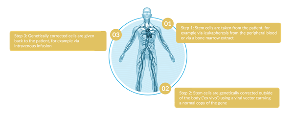 Orchard Therapeutics ex vivo autologous gene therapy uses stem cells collected from a patient’s body, and modified using a viral vector, carrying a functioning copy of the missing or faulty gene that are then transplanted back into the body, to correct genetic disorders.