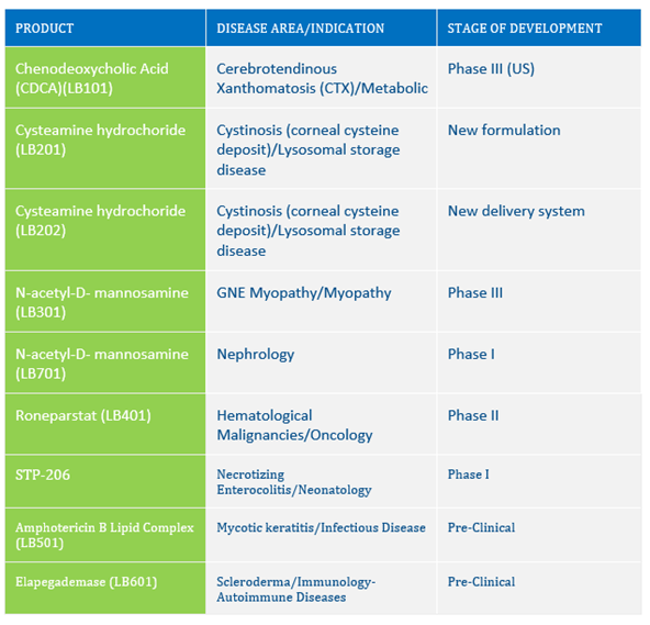 Its primary focus is on developing therapeutics for life-threatening inherited disorders, such as primary immune deficiencies, inherited metabolic disorders and blood disorders. Its pipeline consists of OTL-101, indicated for the treatment of ADA-SCID (adenosine deaminase severe combined immunodeficiency), which has been granted a rare pediatric disease designation and breakthrough therapy designation by the FDA.