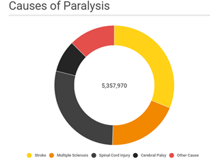 Paralysis is a widespread disability that affects 1.7 percent of Americans, with over 5,357,970 people living with some form of paralysis according a study conducted by the Centres for disease control and prevention (CDC) in association with 14 leading universities and medical centres. A research study estimates that there are nearly 5.4 million people living with paralysis between the ages of 18 and 64 years.