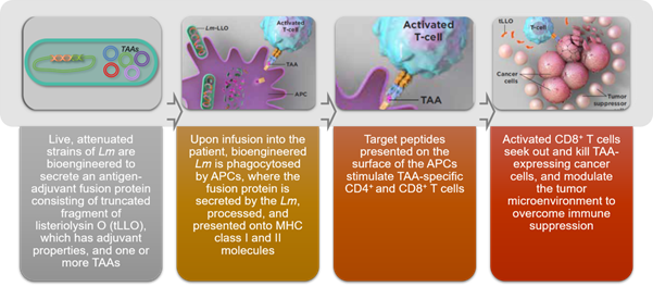 The company’s proprietary Lm technology offers immune stimulation and priming, by mounting a defense against cancer by using the body’s own immune system. Its vector is capable of stimulating multiple immunotherapy mechanisms, with minimal side effects, when compared to conventional treatment options. It can also be combined with other immunotherapy products such as checkpoint inhibitors, radiation therapy, co-stimulatory agents to name a few.