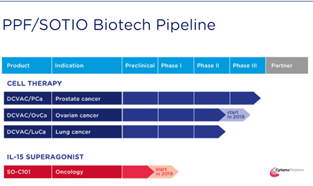 In addition it is also developing SO-C101, a super agonist fusion protein of interleukin IL-15 aimed at the treatment of patients with selected advanced/metastatic solid tumors that is currently undergoing phase I/Ib study. SO-C101 was developed by Cytune Pharma, which was later acquired by SOTIO in September 2018.
