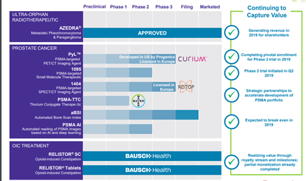 It already markets AZEDRA® (iobenguane I 131), a radiotherapeutic for unresectable, locally advanced or metastatic pheochromocytoma and paragangliom and RELISTOR® subcutaneous injection, and a small-molecule mu-opioid receptor antagonist for the treatment of opioid induced constipation in adult patients with chronic non-cancer pain.